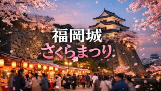 「福岡城さくらまつり2026」は、福岡市中央区にある舞鶴公園(福岡城跡)を舞台に開催される春の一大イベントです。約1,000本もの美しい桜が咲き誇る中、屋台やキッチンカーでのグルメ体験、夜にはライトアップが楽しめます。見どころ満載のこのお祭...