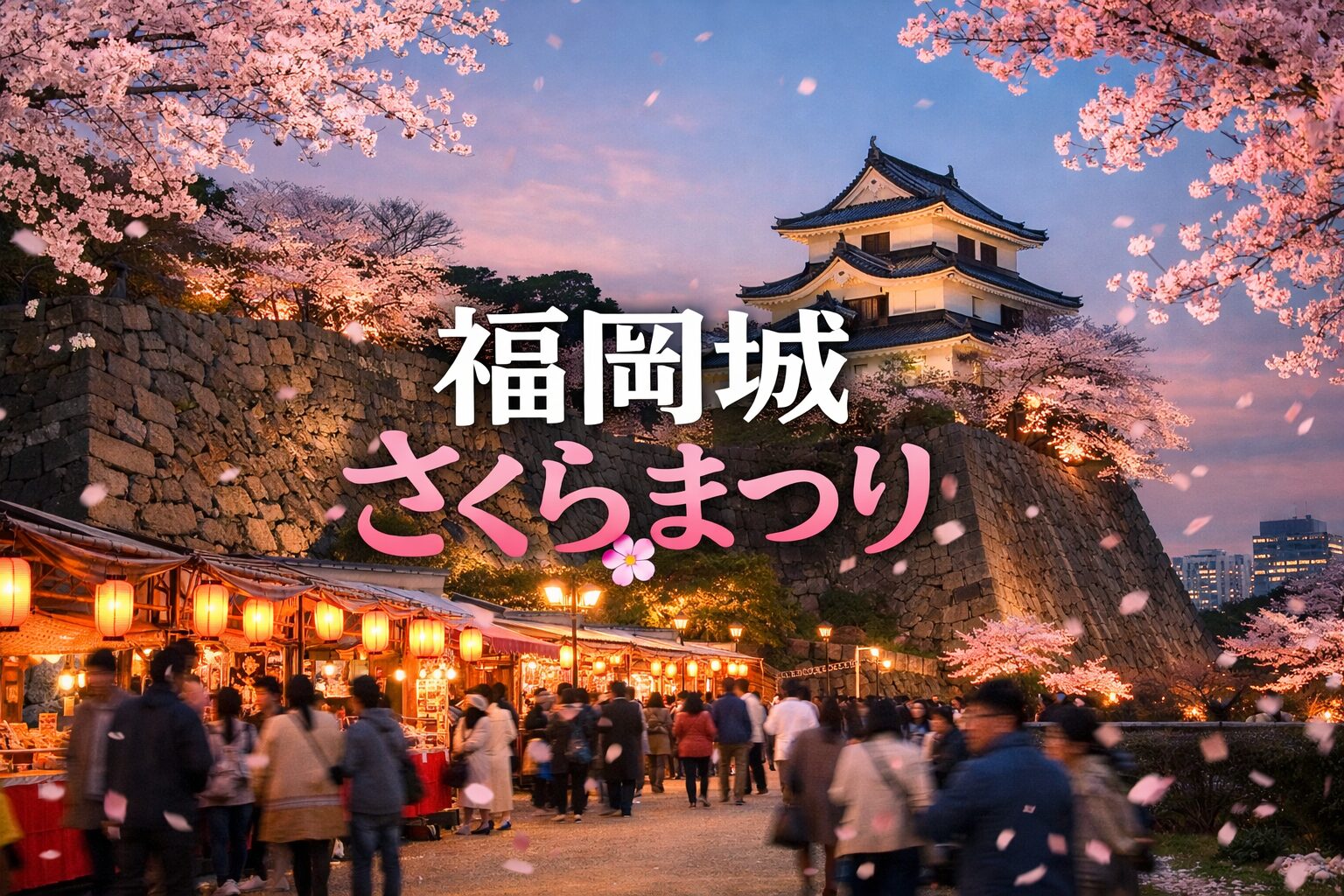 福岡城さくらまつり2026は、福岡市の舞鶴公園で開催される春の風物詩であり、美しい桜とライトアップ、充実した屋台グルメが楽しめる魅力的なイベントです。約1,000本の桜が咲き誇る中、多彩な屋台や「さくら縁日」といった楽しみが満載で、大人から子どもまで幅広い世代が一日中楽しむことができます。